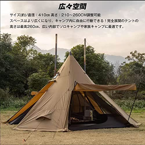 耐熱性に優れた煙突穴が付いているため、燃えにくく安全に薪ストーブをテントに設置できます。