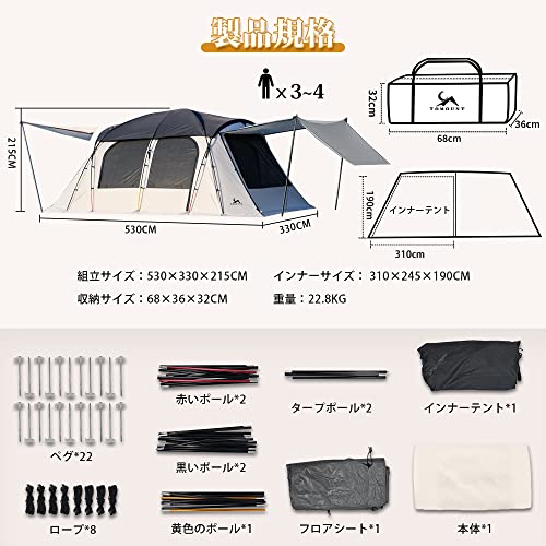 また、耐水圧3000mmのオックスフォードPUを生地に採用しており、雨水や紫外線などを気にせずテントで過ごせます。