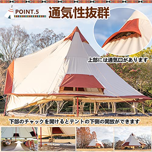 ベルテント式のため天井が高く大人6人がくつろげて、余裕を持って薪ストーブを使用できる広さがある大型のテントです。