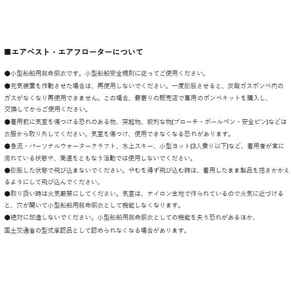 | 浮力 | 7.5kg以上/24時間以上(初期浮力約9kg) |