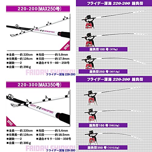 ライトキンメは200~250gのオモリを使用するのが一般的で、まずはそのウエイトに適合するロッドを選ぶことが必要です。