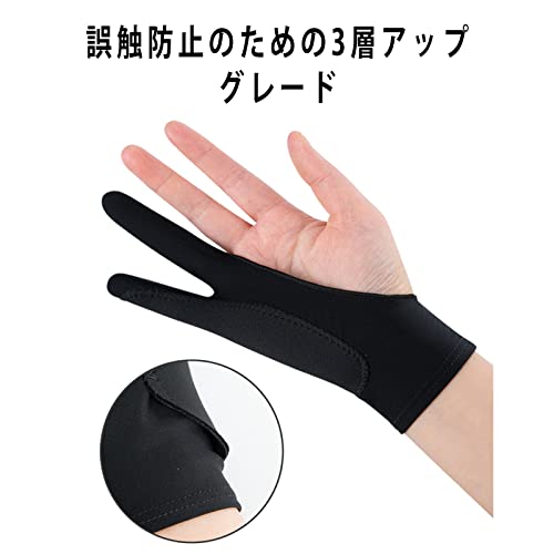 手と液タブとの摩擦を減らしスムーズに作業ができるように2本指グローブ設計になっています。