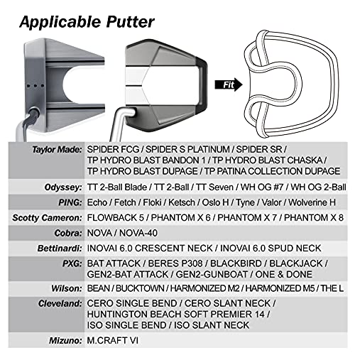 形状がスクエア型なので、テーラーメイドやミズノ、キャロウェイまで、さまざまメーカーのマレットパターを収納できます。