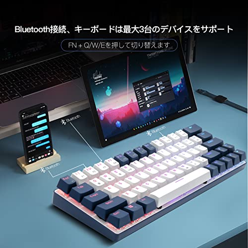 静音性に優れた赤軸を採用しており、有線・Bluetooth接続も可能なコンパクトキーボードです。