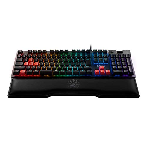 長時間のゲームプレイに便利なリストレストが搭載された、比較的大型のフルサイズ銀軸メカニカルキーボードです。