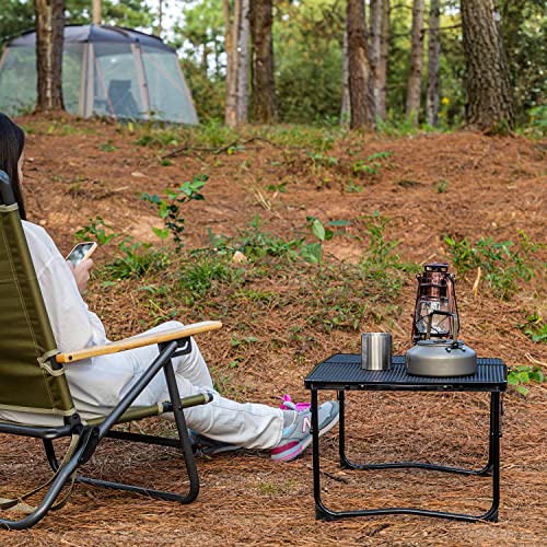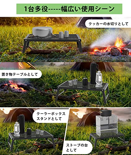 ソロキャンプやサイドテーブルにぴったりのサイズと高さで、焚き火やバーナーの五徳としても使用できます。