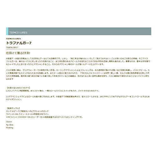 ティムコから出されているトラファルガー7は、I字系とミドストの動きを両立することが出来る珍しいルアーです。