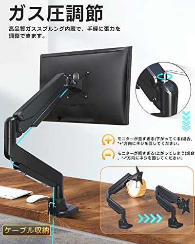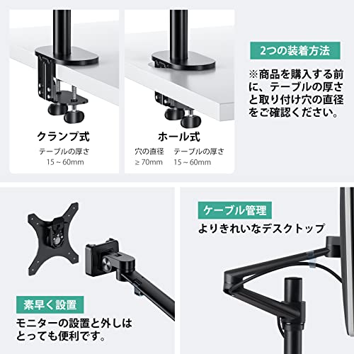 Exljzdp モニターアーム 13~37インチ対応 アルミニウム合金製 K01-1C約15kgクランプ式・グロメット式