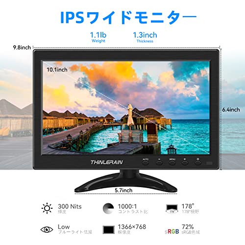 Thinlerain モバイルモニター10.1インチ25.3×16.6×3.5cm/930g1366×768非対応
