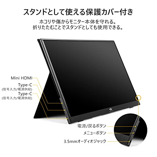 15.6インチサイズで携帯性を維持しつつ、USB Type-Cによる端末への給電も行えるモニターです。