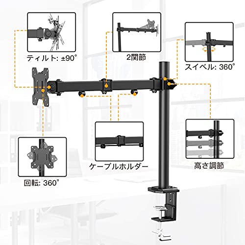 重量8kgまで、13インチから32インチまでVESA規格のモニターに対応したモニターアームです。