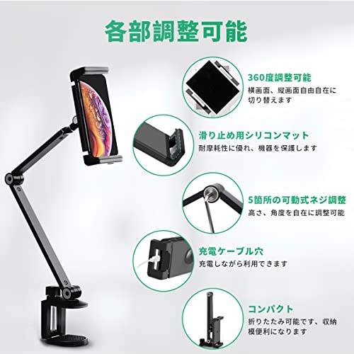 タブレット スタンド アーム 4.7〜15.6インチ対応 モバイルモニター兼用ホルダー ブラック