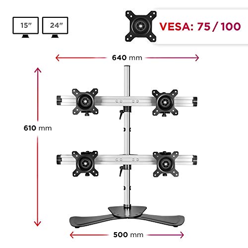 15~24インチモニターが4枚取り付け可能であり、ワイドなマウントが安静性を向上させたモニタースタンドです。
