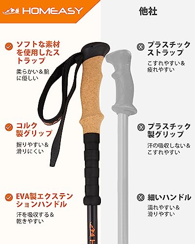 | HOMEASY トレッキングポール 登山ストック 2本セット | アルミ合金 | 790g | 125cm |