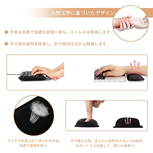 どちらのリストレストも人間工学に基づいており、手首の疲労を緩和し、パソコン作業を優しくサポートします。
