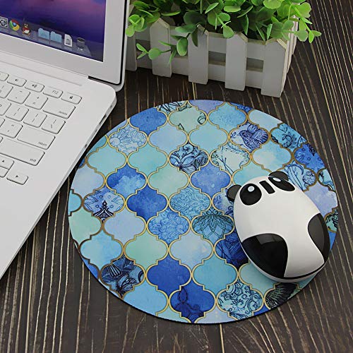 モロッコの伝統的なタイル柄と水彩画風の淡い色彩を組み合わせた、円形のマウスパッドです。