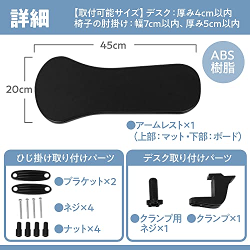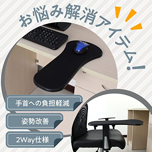 机にも椅子にも取り付けて使用することができ、設置も簡単にできるアームレストになっています。