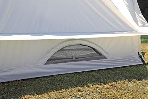 上部とサイドについたベンチレーションにより、空気を循環させながら換気ができ、スカートによりテント内の保温もできます。