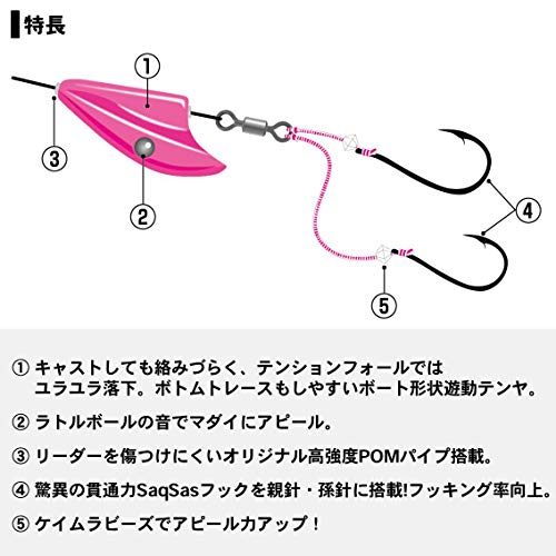 がまかつの針を採用し、親針には強度が高い伊勢尼を、孫針には貫通力が高いサーベルポイントナノコートが採用されています。