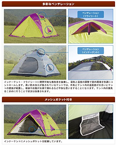2人用のワンタッチテントで、通常のドーム型とリビング付属タイプの2種類が展開されています。