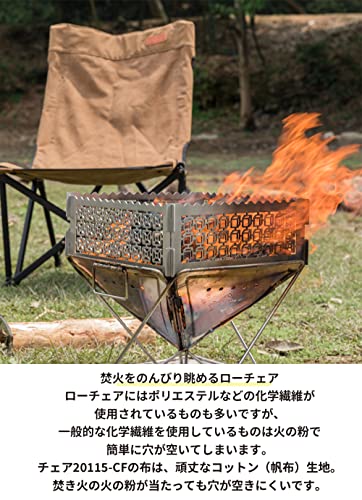 帆布素材は通気性がよく火の粉にも強い性質があり、キャンプや焚き火周りにはぴったりのチェアです。
