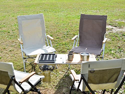 ゆったり座れるアウトドアチェアには木製のアームレストやテーブルなどが付属していたりとゴージャスなものが多いです。