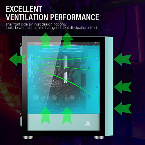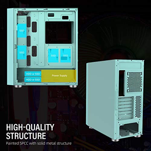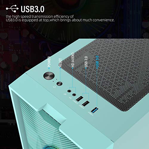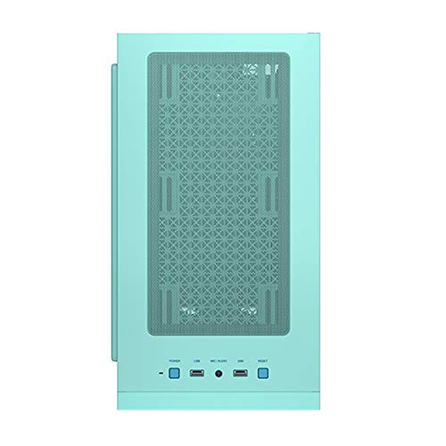 グリーン寄りの水色で、淡いカラーが特徴のPCケースです。