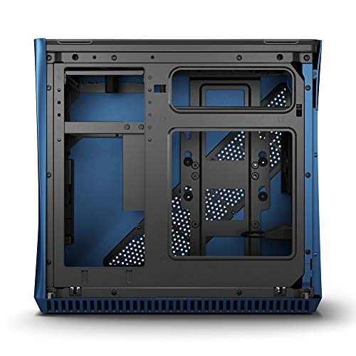 メタリックブルーのようなカラーで、デザインもかなり珍しいPCケースです。