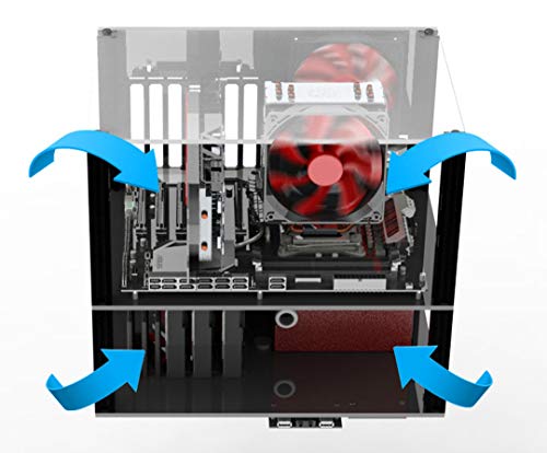 各種ファンで空気の流れを作っていますが、それにプラスして色々なところから吸気できるので、通常のPCケースより冷えます。