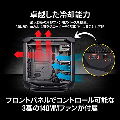 大型水冷ラジエータと最大9基のファンが設置できるスペースが確保されており、通気性にも優れているのが特徴です。