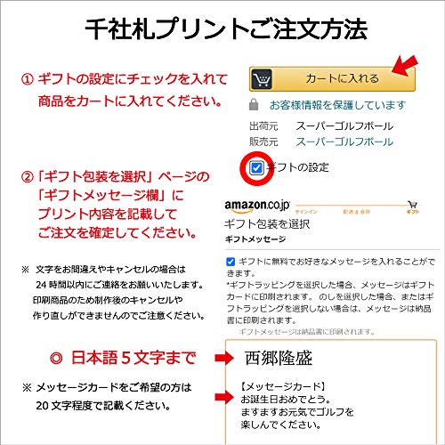千社札のデザインで好きな文字をプリントする事ができるゴルフボールです。