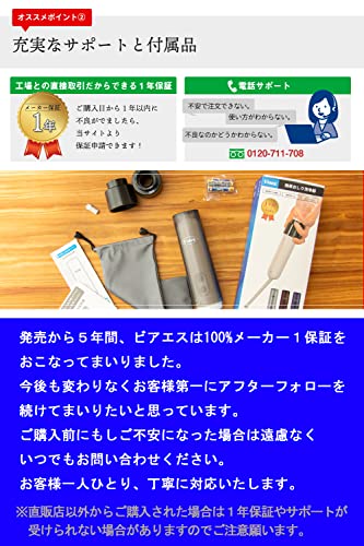 単三電池1本でタンクの外から電池交換が出来る手軽さと、リチウム電池を使っていないので電池の規制のある外国にも持ち出し可能なので便利です。
