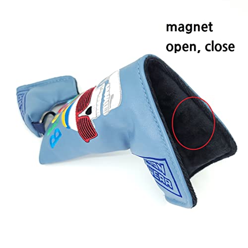 スコッティーキャメロンのパターやオデッセイのパターに適合する、マグネット開閉式のピンタイプのパターカバーです。