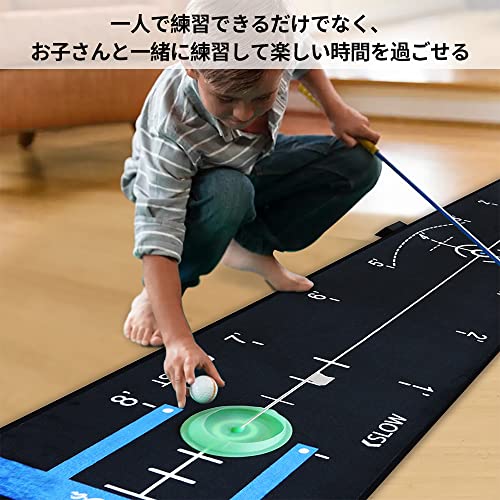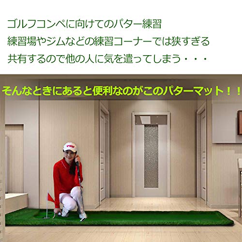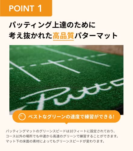 こちらは天然芝に近いボールの転がりを再現しており、10フィートと11.5フィートの速さで上達をアシストするパターマットです。