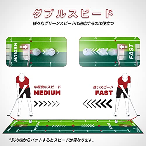 グリーンの速さが10フィートに設定されており、場所によって中速、高速のスピードに変化するパターマットです。