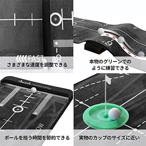 こちらは4つのスピードモードで練習でき、ボールの軌道が見えるのでパッティングスキルが向上するパターマットです。
