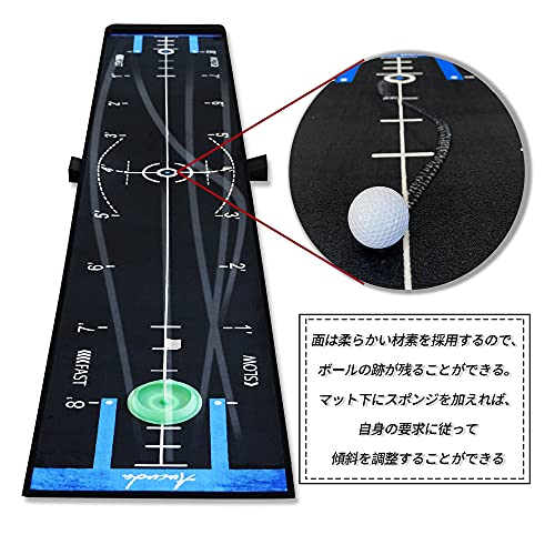 初心者から上級者までしっかりと練習できる、打ち出す方向や狙うカップによって傾斜や障害物があるパターマットです。