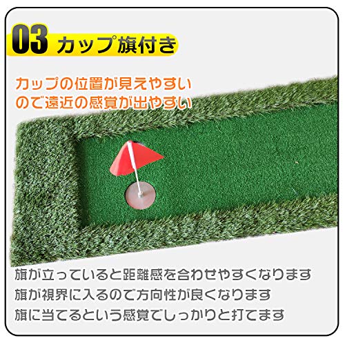 距離感や真っ直ぐ打ち出す練習に最適で、フラッグがあることで視認性が高く、遠くからでもカップの場所が分かります。