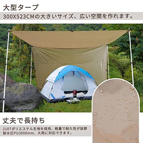 YAPJEB 防水タープ キャンプ タープ1.5kg300×500cm210Dオックスフォード