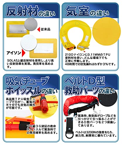 - 3.5 【SuperSunny】ライフジャケット 手動膨張式 ベルトタイプ