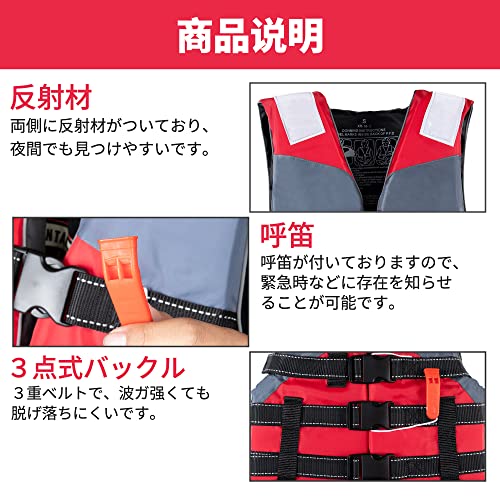 フローティングタイプのライフジャケットで、緊急用のホイッスルが付属しています。