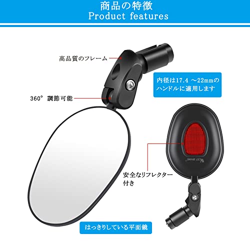 Etermeta 自転車バックミラー85 g96 × 70 mmABS, PC