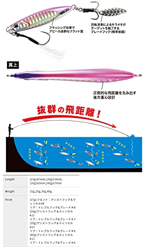 スリムなボディで飛行姿勢も良く、遠くのナブラまでもしっかりと飛ばすことができ、サワラをヒットさせることのできるブレードジグです。