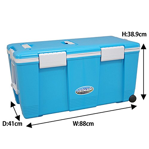 80㎝クラスのサワラを楽に入れることができ、キャスター付きで軽々と運べる大型クーラーボックスです。