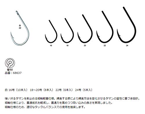 釣り針は軸が太く貫通性が高いタマン針が適しており、サイズは16~20号を使い分けます。