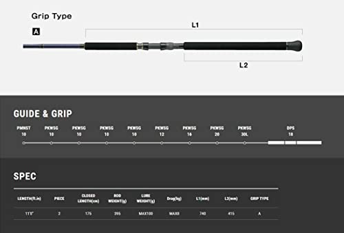 ショアジギング&プラッキングでのパワーゲームに最適な1本で、150gまでのジグを容易に扱えるスペックです。