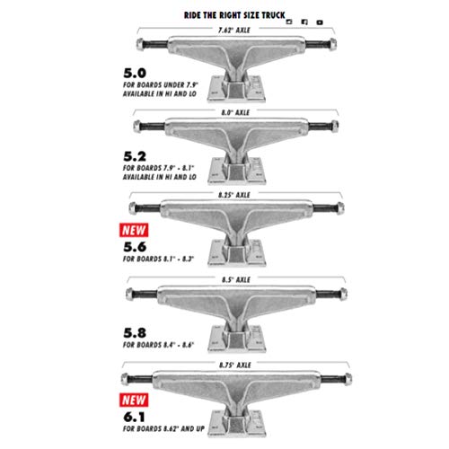 7インチ前後のデッキに合うようにハンガーサイズが短く、クイックなターンを実現させるため立気味のキングピン角になっています。