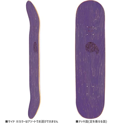 こちらのデッキデザインはシンプルで、紫色の背景にブランドロゴと矢印がプリントされたグラフィックデッキとなっています。