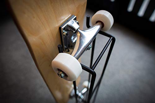 床や壁に接地させることなくスケートボードを保管でき、物によっては転倒の危険がないタイプもあります。