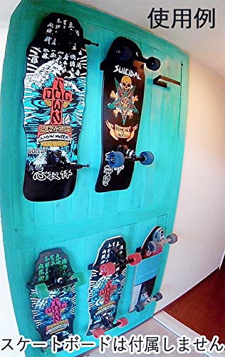 壁にねじを埋め込んで使用する、フック形状のスケボーコンプリート対応ラックになります。
